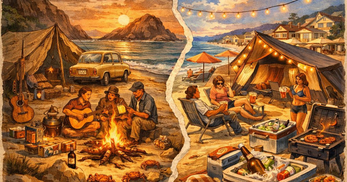 Hace unos días, un amigo me comentaba que, recordando cuando de niño iba con sus padres a la playa de campamento, tuvo la peregrina idea de proponer a su esposa e hijos el ir todo un fin de semana de campamento a la playa. Lo que me contó me dejó asombrado pues eso de campamento no tenía nada, al menos de los campamentos de verano que yo recordaba.