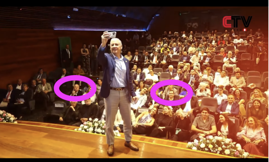 Diego Acuña, conductor del programa EDICIÓN ESPECIAL, aparece desde el 20 de noviembre de 2025 con un sticker del Consejo Nacional de Minería (CONADEMI) en su computadora, entidad presidida por Jimmy Pflücker.